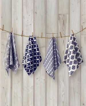 Elrene Everyday Casual Prints Assorted Indigo Cotton Fabric Kitchen Towels - Set of 4