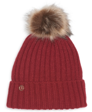 Calvin Klein Fleece-Lined Knit Pom Pom Hat