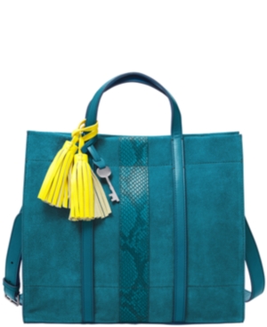 Fossil Women's Carmen Leather Tote with Applique Stripe