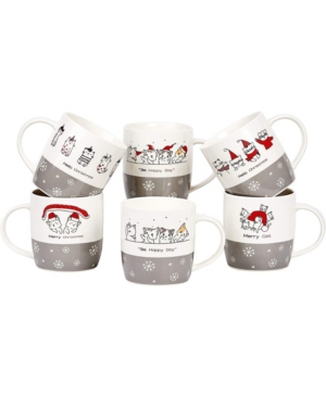 Bruntmor 12 oz Christmas Cats Coffee Mugs, Set of 6