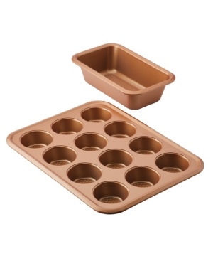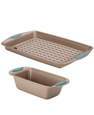 Rachael Ray Cucina Nonstick Bakeware Crisper Pan and Bread Pan Set, 3-Piece, Latte Brown with Agave