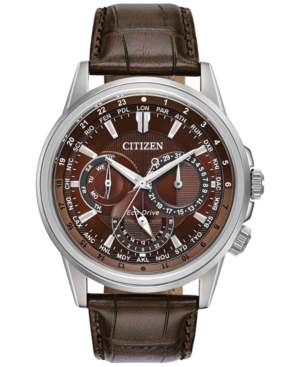 Citizen Eco-Drive Men's Calendrier Brown Leather Strap Watch 44mm