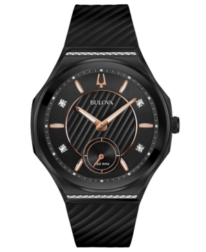 Bulova Women's Curv Diamond-Accent Black Rubber Strap Watch 41mm