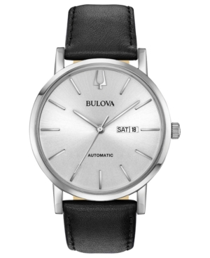 Bulova Men's Automatic American Clipper Black Leather Strap Watch 42mm