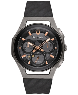 Bulova Men's Chronograph Curv Black Rubber Strap Watch 44mm 98A162