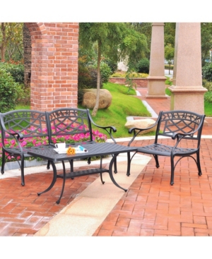 Sedona 3 Piece Cast Aluminum Outdoor Conversation Seating Set - Loveseat, Club Chair And Cocktail Ta