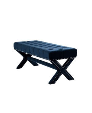 Inspired Home Louis Tufted Nailhead Bench with X-Legs