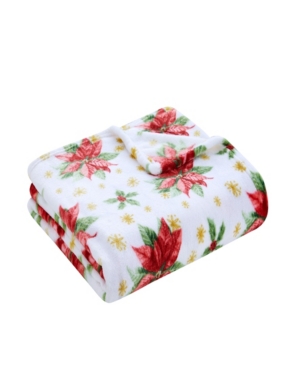 Vcny Home Holiday Poinsettia Fun Printed Plush Throw