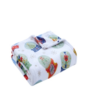 Vcny Home Holiday Snow Globe Printed Plush Throw Blanket
