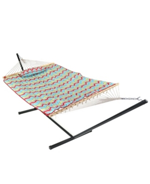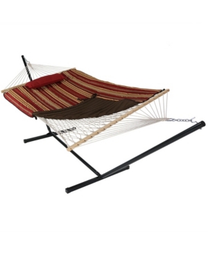 buy nowSunnydaze Decor Cotton Rope Hammock with 12' Portable Steel Stand and Spreader Bar