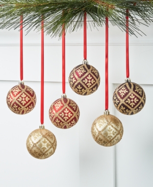 Holiday Lane Evergreen Dreams Set of 6 Red Gold Burgandy Shatterproof Ornaments, Created for Macy's