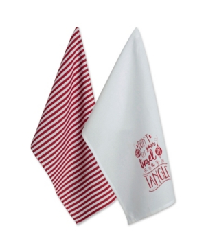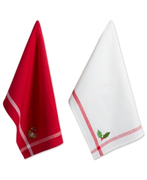 Design Imports Stripe Holly Mistletoe Holiday embroidered Dishtowel Set