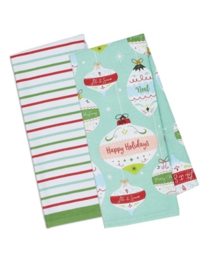 Design Imports Dishtowel Holiday Ornaments and Stripes Set