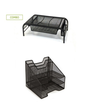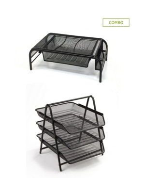 Mind Reader Metal Mesh Monitor Stand And 5 Tray Letter Organizer 2 Pc Set, Black