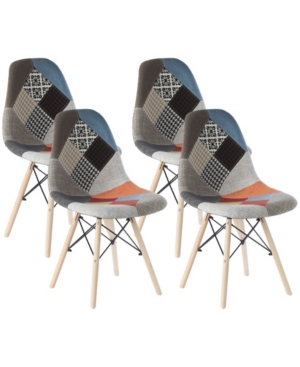buy nowBold Tones Mid-Century Modern Upholstered Plastic Fabric Patchwork Shell Dining Chair with Wooden Do