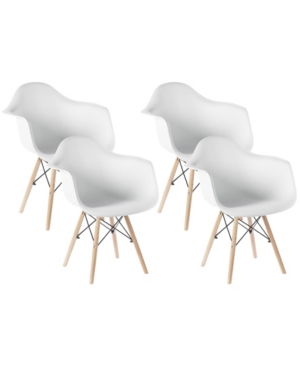 Bold Tones Mid-Century Modern Style Plastic Shell Dining Arm Chair with Wooden Dowel Eiffel Legs, Se