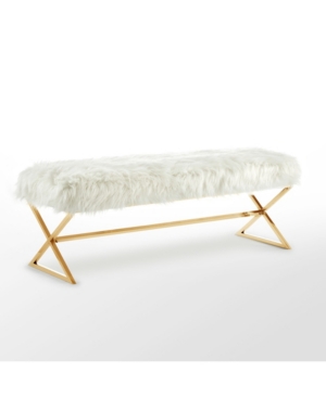 Inspired Home Aurora Faux Fur Bench with Metal X-Leg Frame