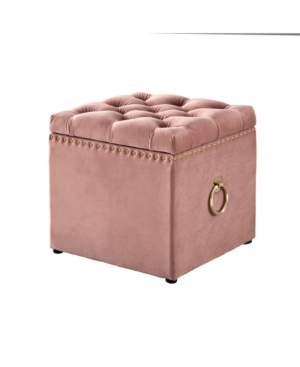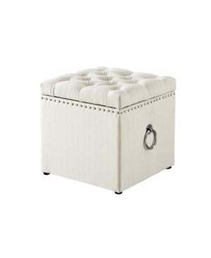 Inspired Home Ella Upholstered Storage Cube Ottoman with Nailhead Trim