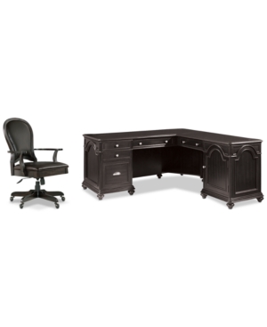 buy nowClinton Hill Ebony Home Office, 2-Pc. Set (L-Shaped Desk & Leather Desk Chair)