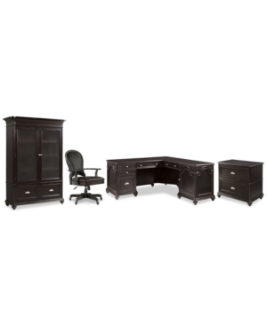 buy nowClinton Hill Ebony Home Office, 3-Pc. Set (L-Shaped Desk, Lateral File Cabinet & Leather Desk Chair)