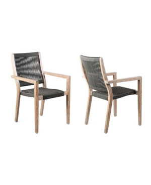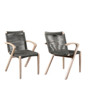 Armen Living Madsen Outdoor Acacia Wood and Rope Dining Chairs - Set of 2