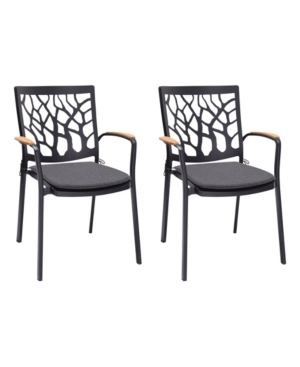 Armen Living Island Outdoor Eucalyptus Wood Dining Chairs - Set of 2